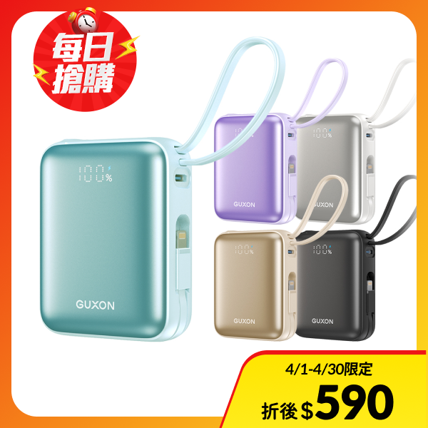 【GUXON 古尚】巧方塊雙線快充行動電源 10000mAh_38.5Wh(具Wh標示/自帶線)