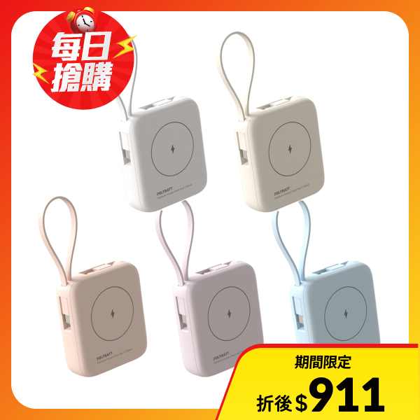 【POLYBATT】台灣製造 10000mAh 20W 自帶雙線/數顯/磁吸無線快充行動電源((T10))