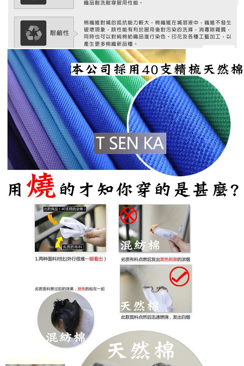 *採用中磅數天然棉65+彈性纖維合身型+合身袖口