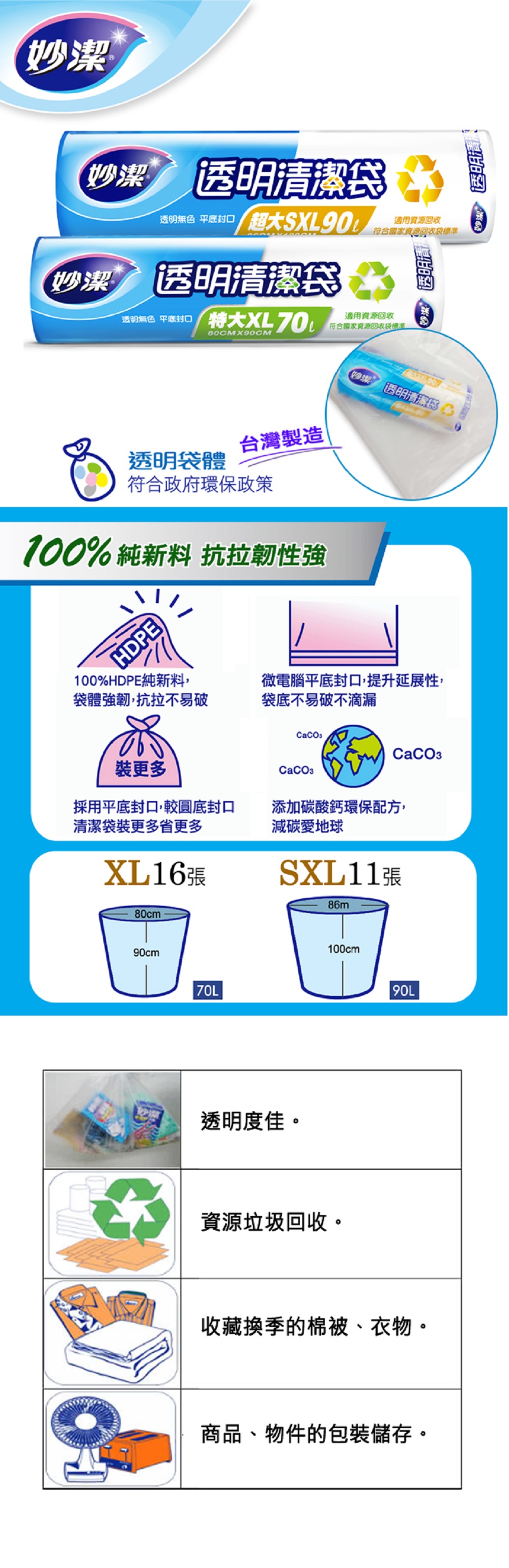 .100%純新HDPE材質,袋體強韌,抗拉力好