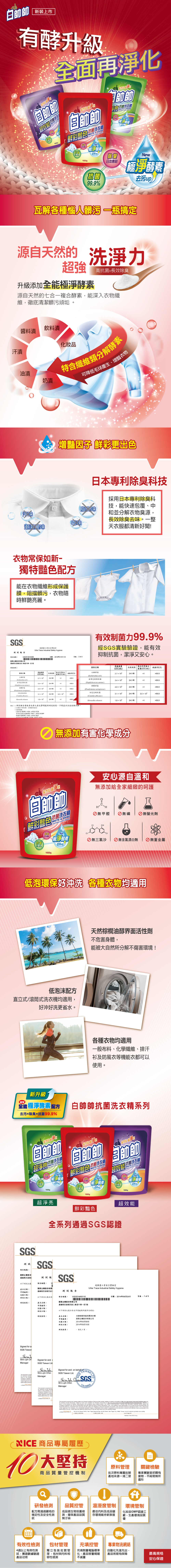 全新七合一酵素深入衣物纖維,有效去除髒污頑垢 。獨特鮮彩豔色配方,在衣物纖維形成保護膜,阻擋髒汙,衣物隨時鮮艷亮麗。