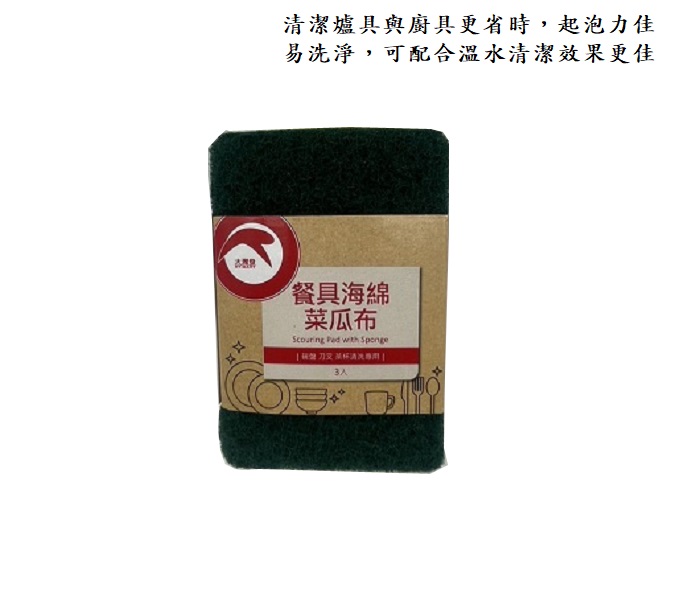 - 使用方法:將菜瓜布浸濕後,依照需求添加清潔劑,刷洗髒污後,用水沖洗乾淨.