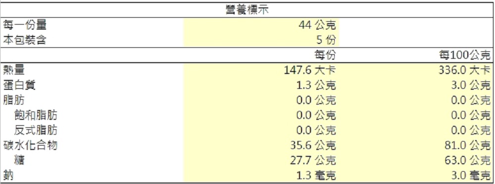 - 營養標示: