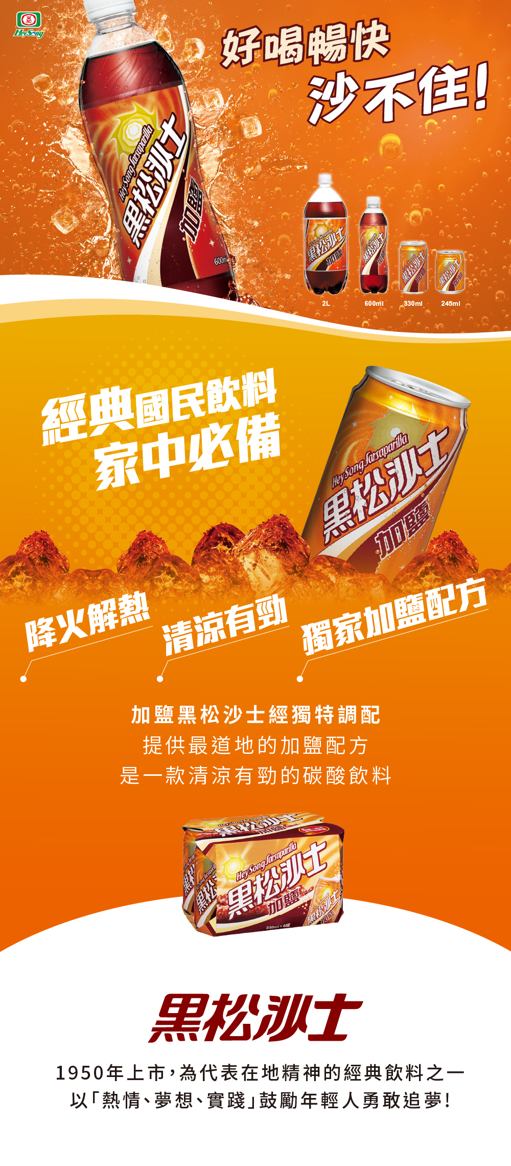 | 產品特色 | 黑松沙士提供最適合的加鹽配方,獨家口味,清涼有勁,容量更多更划算。 |