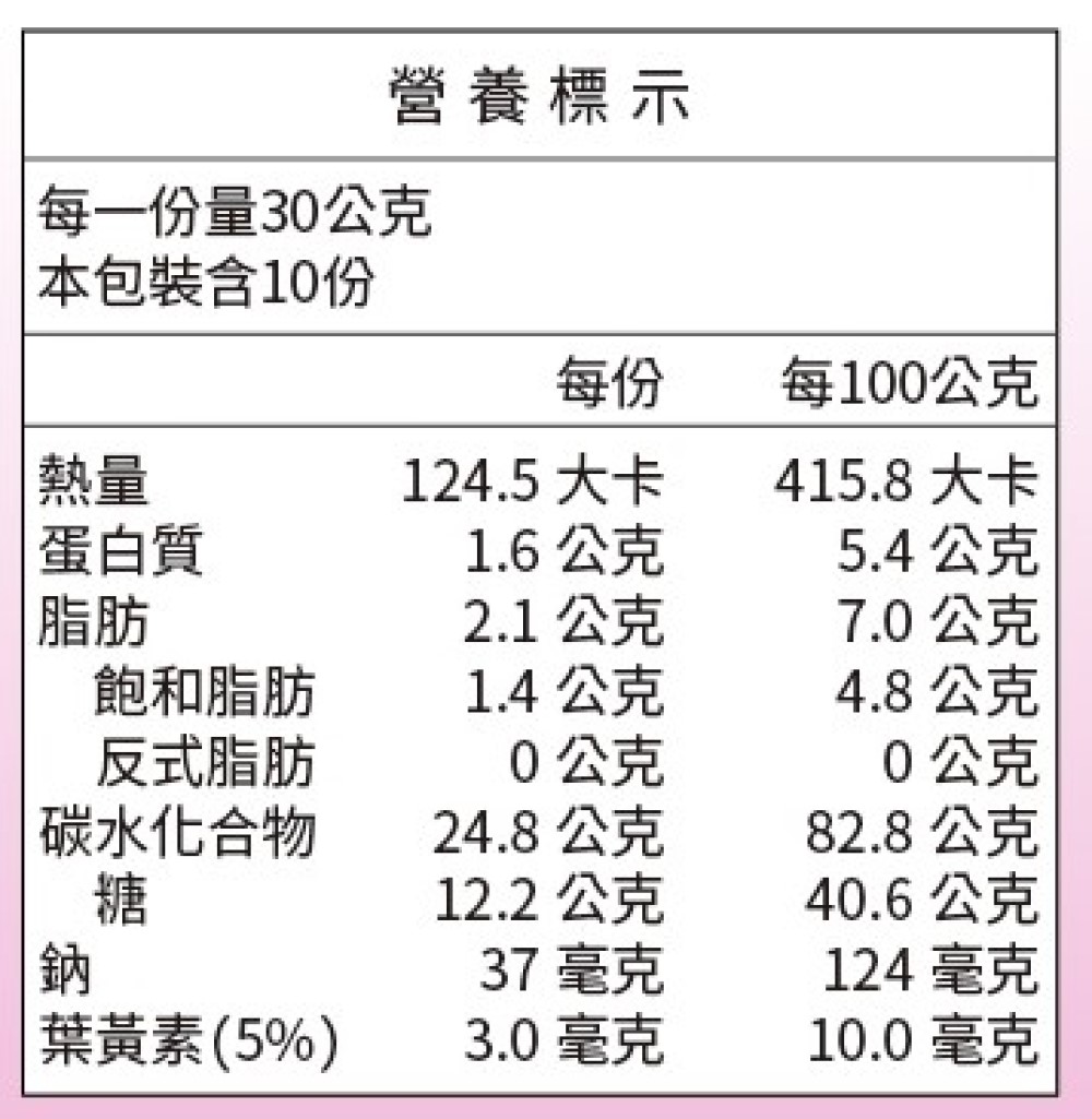 - 營養標示:如圖示