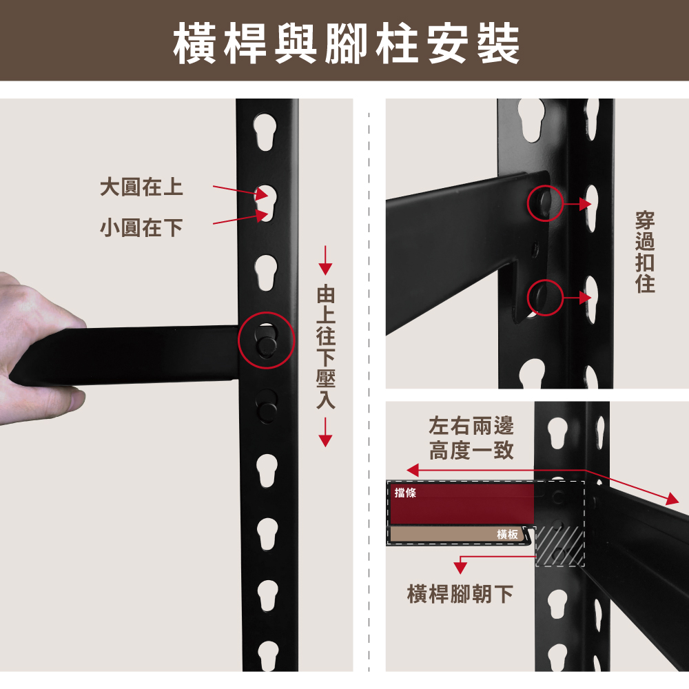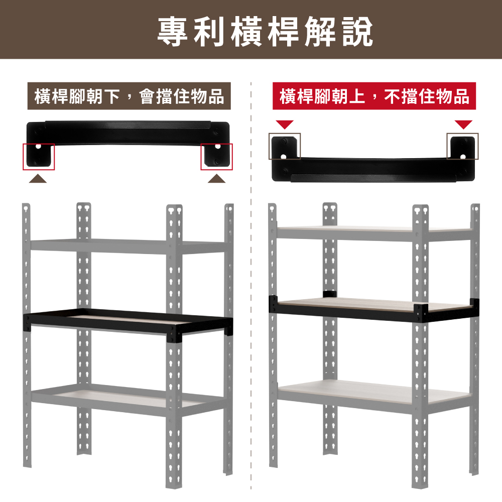 ● 角鋼採專利卡榫式,可依需求自由調整木紋板高度(間距),有效利用每一個收納空間。