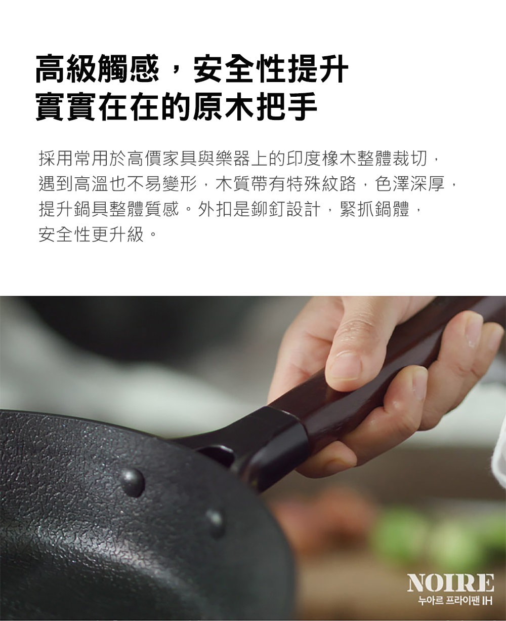 【材質】鍋身:鋁合金,不銹鋼導磁版;把手:印度橡木;吊環:ABS