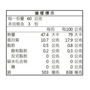 成分:鮪魚、鰹魚、水、大豆油、調味劑(L-麩酸鈉、胺基乙酸、琥珀酸二鈉、DL-胺基丙酸、5'-次黃嘌呤核苷磷酸二鈉、5'-鳥嘌呤核苷磷酸二鈉、L-天門冬酸鈉、檸檬酸鈉、二氧化矽)、鹽、黏稠劑(關華豆膠)