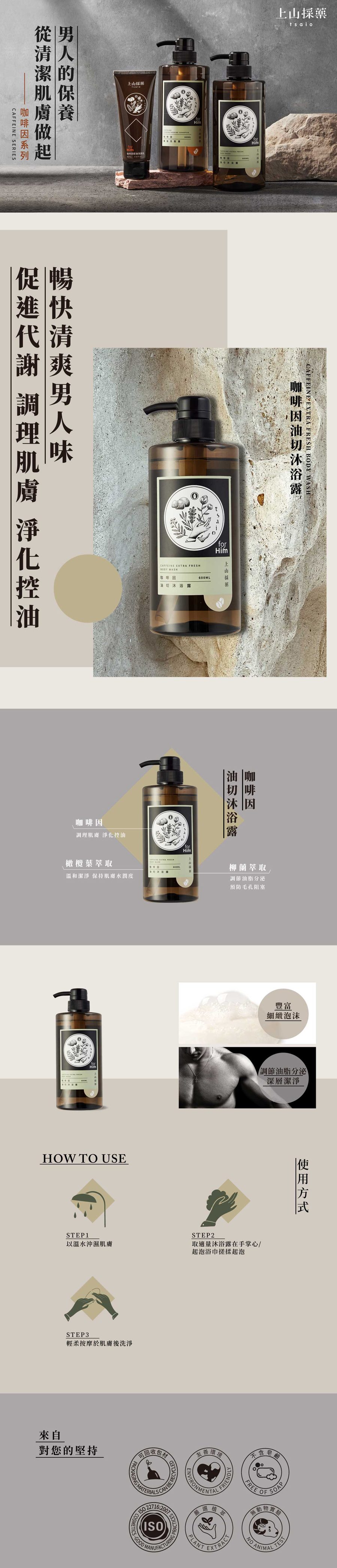 內容物:上山採藥 ForHim咖啡因沐浴露