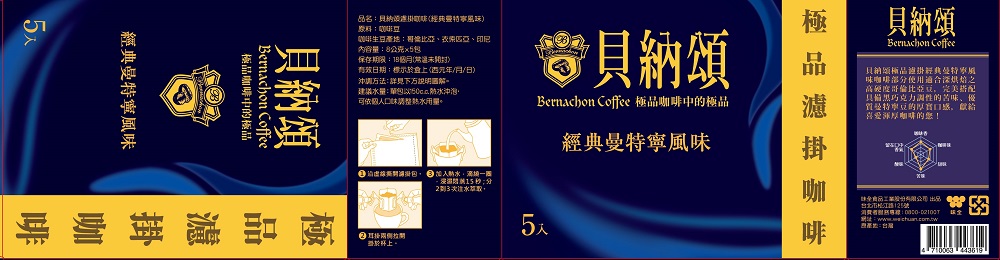 貝納頌】濾泡式咖啡曼特寧(8g*5包/盒)