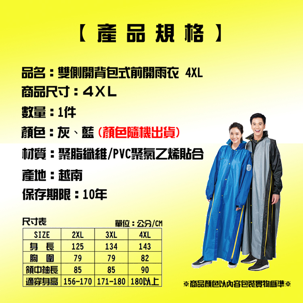晶寅】雙側開背包式前開雨衣 4XL(1件(顏色隨機出貨))