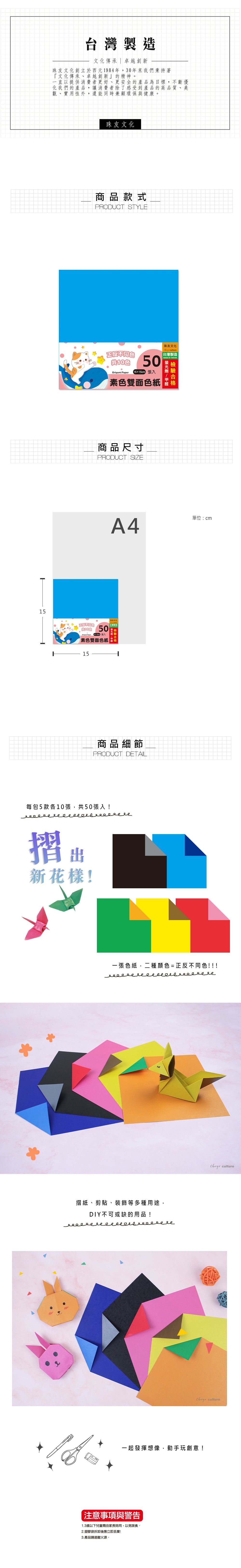 *每包有5款各10張,共50張 *雙面素色 *無論是美勞或是摺紙都很適合