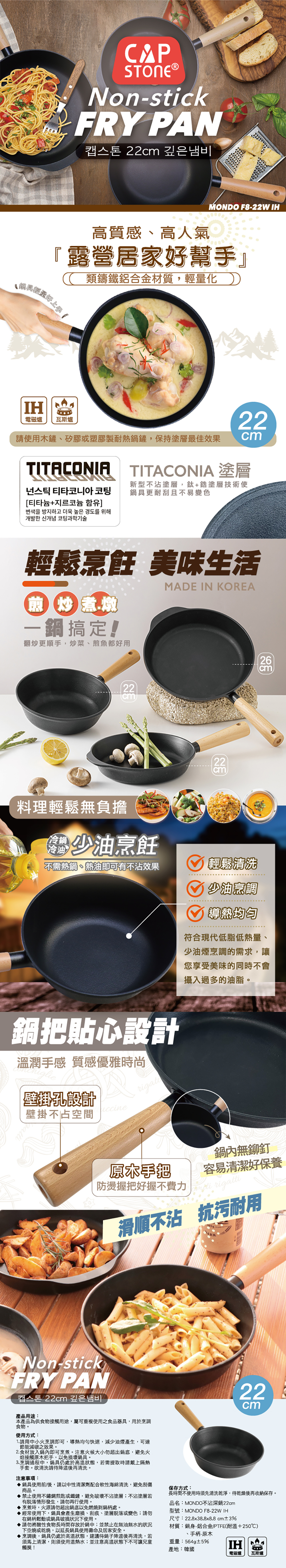 材質:鍋身-铝合金/PTFE(耐溫+250*C)、手柄-原木