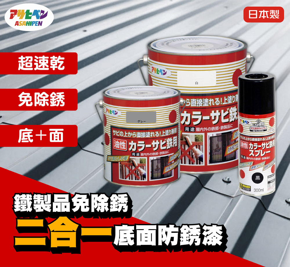 日本Asahipen】免除鏽 免打底 二合一底面防鏽噴漆(300ML 多色可選 防鏽 除鏽 防銹 除銹 紅丹 鍍鋅 鍍鉻)