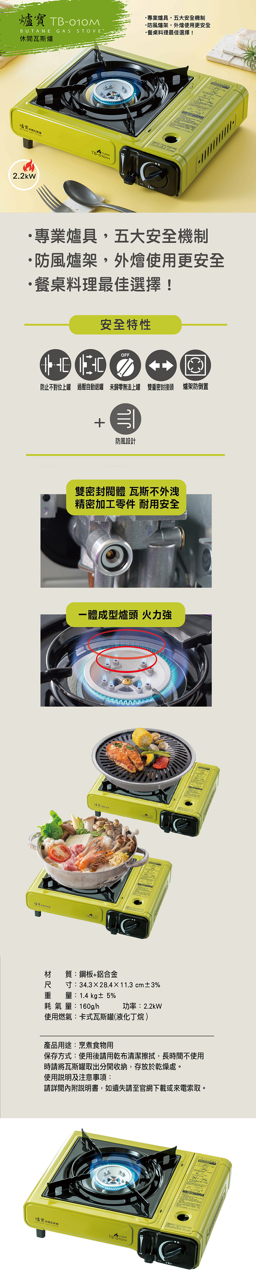 注意事項:本產品僅適用卡式爐規定之炊具