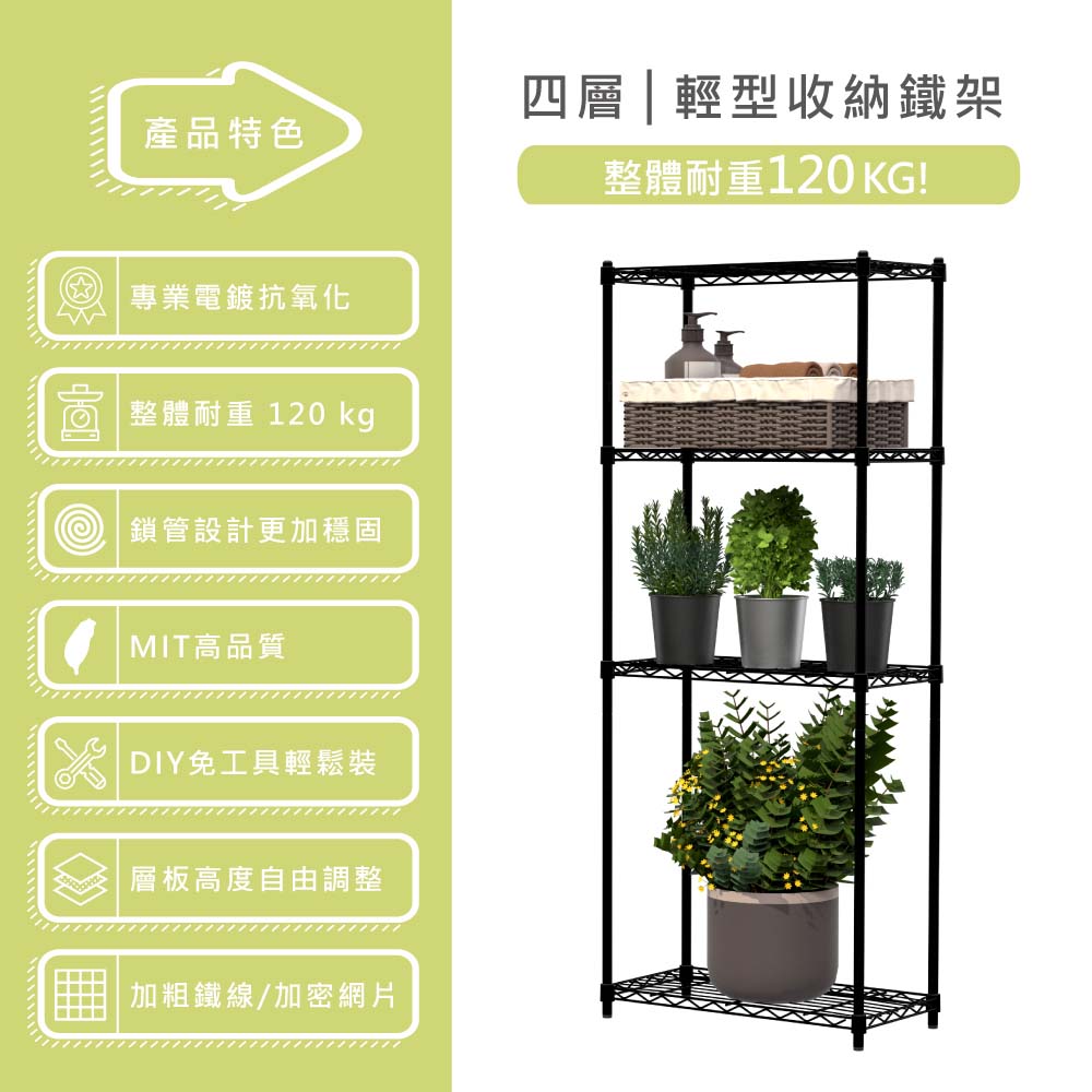 ● 承重說明:單層靜態平均分佈受重30kg / 整體四層耐重120kg