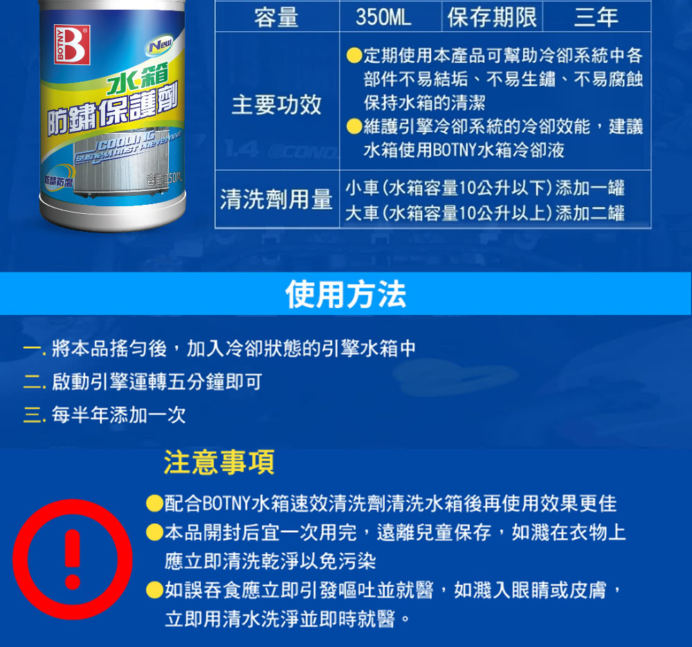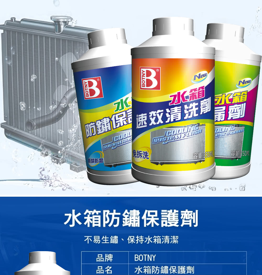 BOTNY】水箱防鏽保護劑(350ML 引擎 水箱 防鏽 漏水 破裂 除鏽 冷卻 清洗 保養 清潔 水箱精 濃縮)
