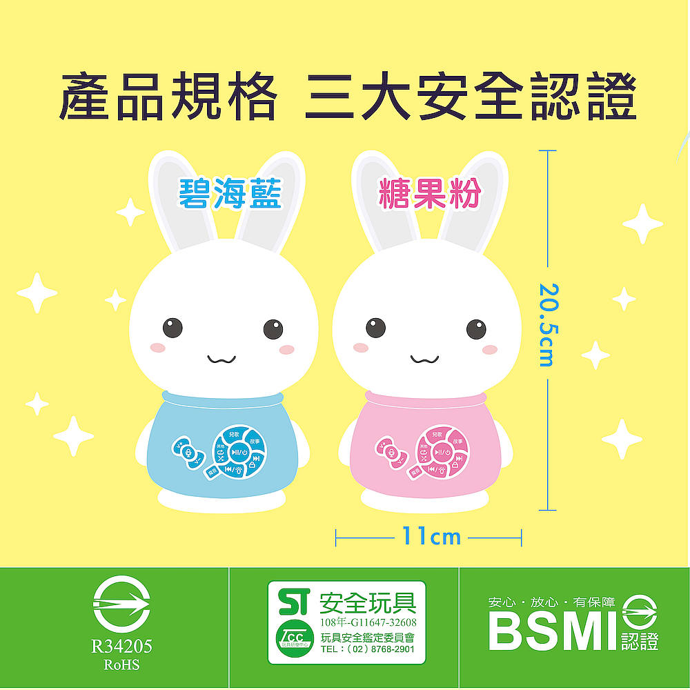 ●超萌顏值:圓潤外型無尖角、長耳朵好抓握,雙耳無毒矽膠可啃咬