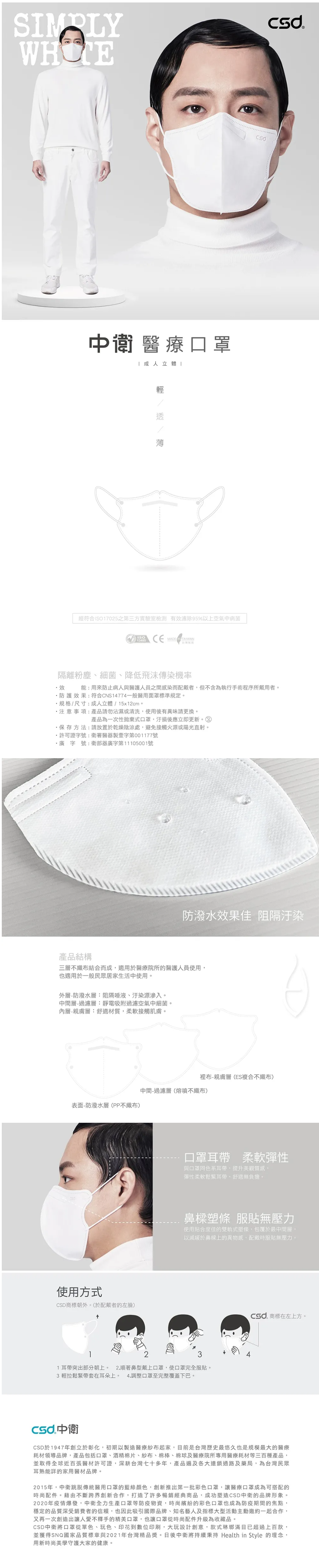 - 中衛醫療口罩-Simply white