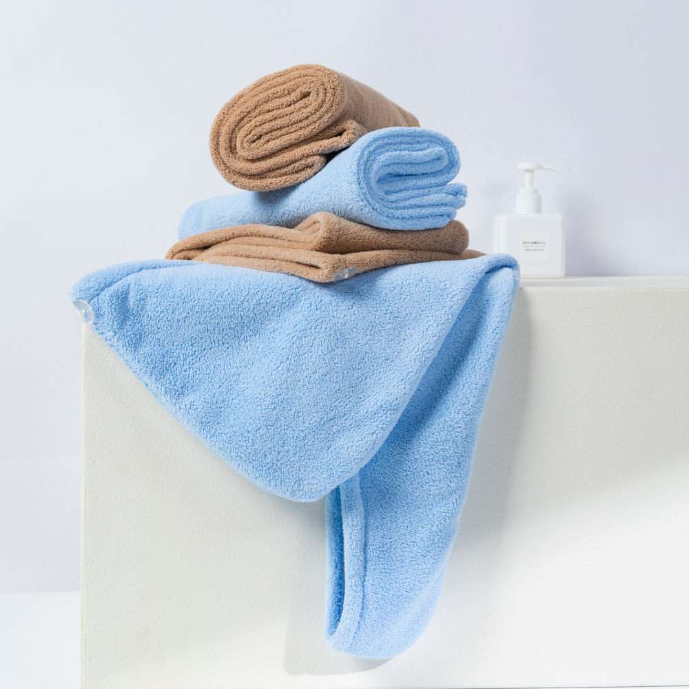 No Brand】品居素雅吸水乾髮帽 咖(63x24cm)
