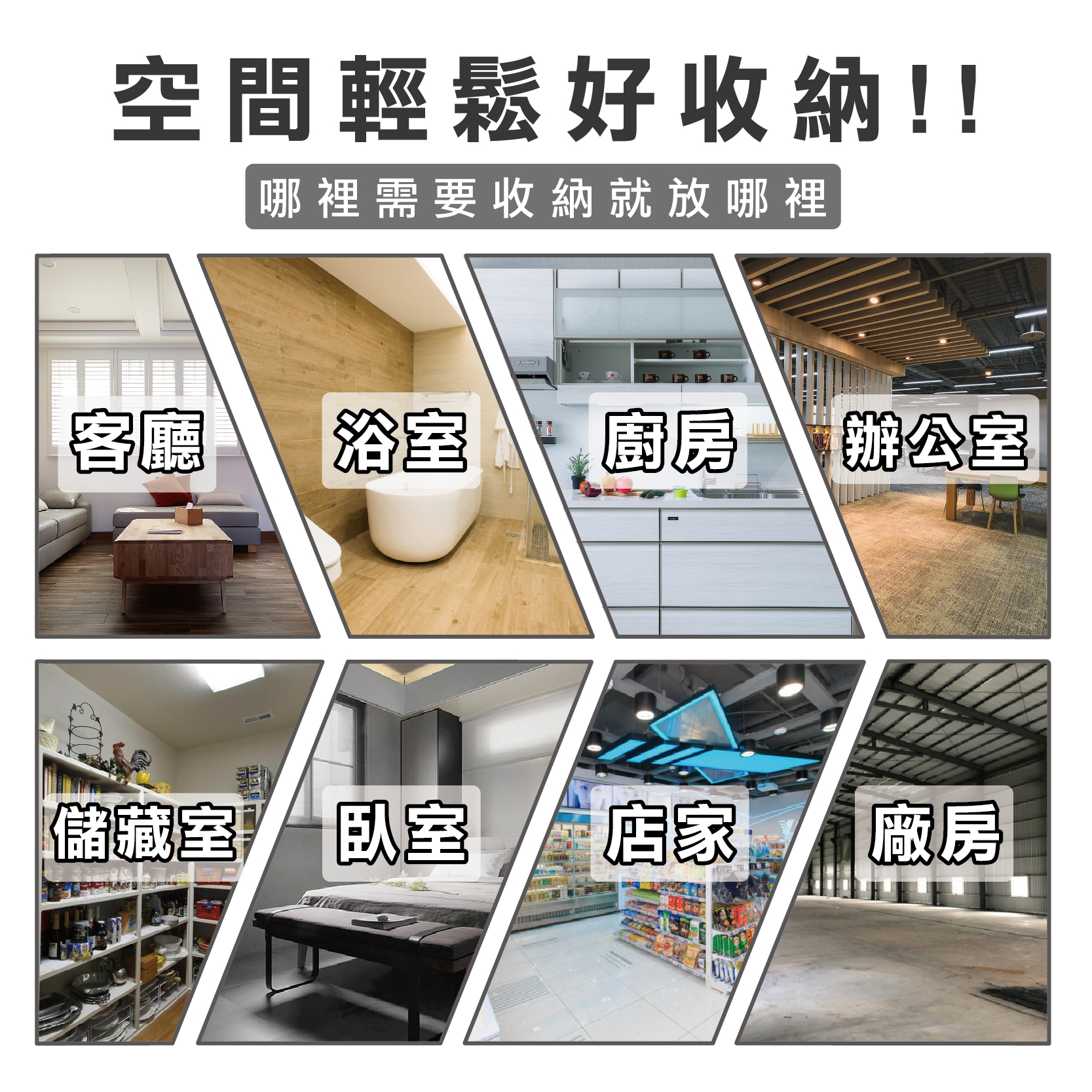 ● 網片採夾片式固定,可依需求自由調整網片高度(間距),有效利用每一個收納空間。