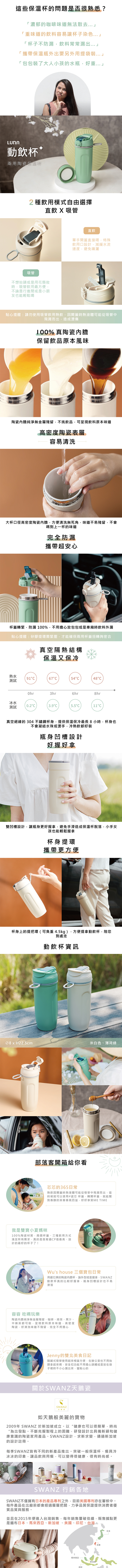 材質:杯身 304 不鏽鋼/杯蓋 硬陶瓷、PP、食用級耐熱矽膠/內芯 100% 硬陶瓷