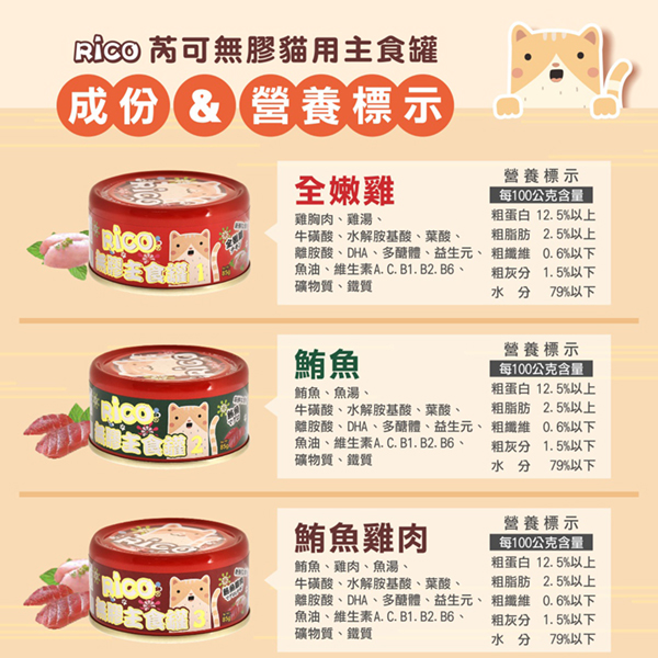 芮可 RICO】無膠全肉貓用主食4號罐(鮪雞+干貝口味)(85g)
