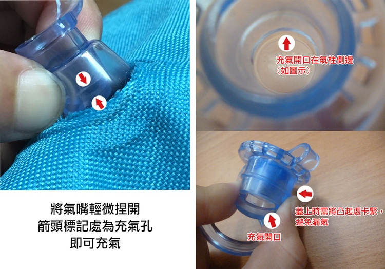 ◆ 充氣時應隨時注意飽合度,建議充8分飽即可,以免充過飽破壞結構。