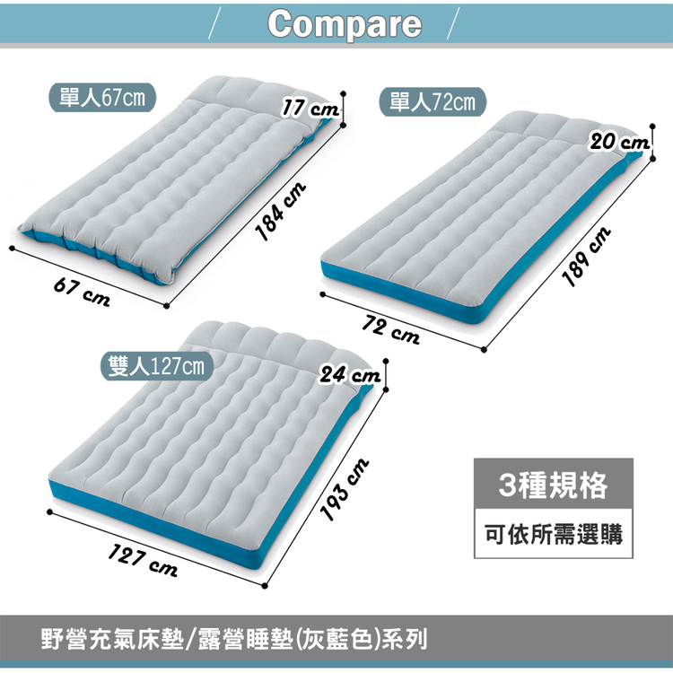 【INTEX】單人野營充氣床墊/露營睡墊-寬67cm (灰藍色) 15010220(67997)