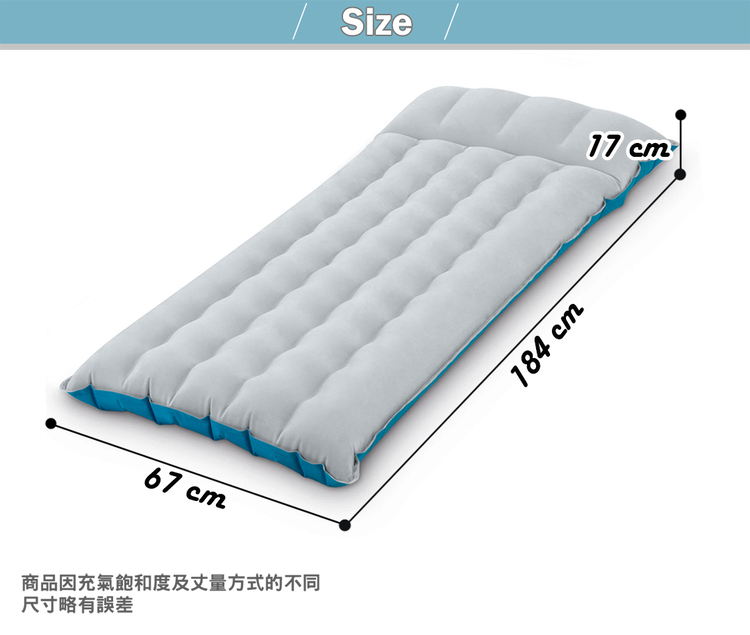 ◆ 充氣商品因充氣飽和度不同,尺寸會有些許誤差,測量起來長寬誤差約±10cm。
