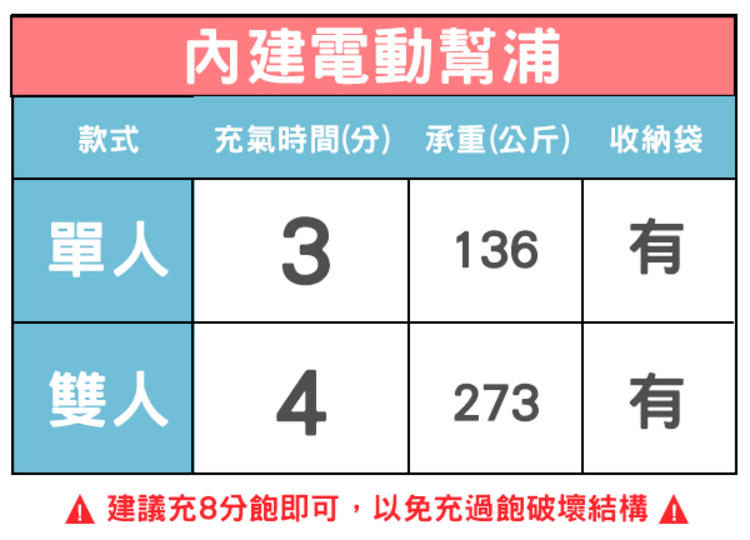 ◆ 保固:新品保固14天,商品若有瑕疵,請於鑑賞期7天內反映,一經充氣使用恕無法辦理退貨。