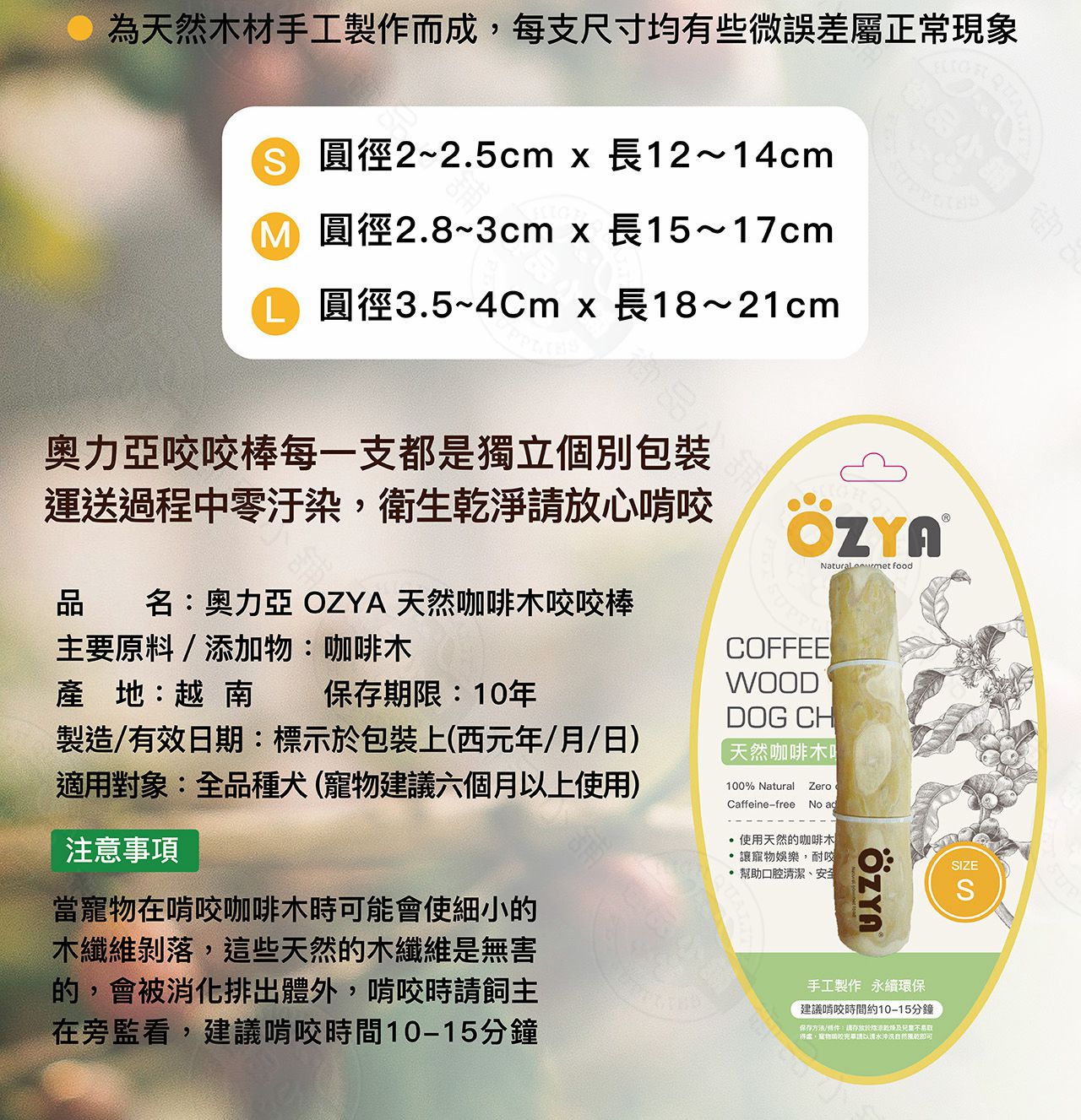 OZYA 奧力亞 天然咖啡木咬咬棒 S.M.L 天然咖啡木製成 寵物娛樂 耐咬磨牙 口腔清潔 安全健康 犬用玩具 啃咬