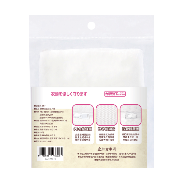 台灣製造洗衣必備良品經SGS認證無螢光劑(無漂白過)可放心清洗貼身衣物及嬰幼兒衣物塑鋼拉鍊頭,好拉且不勾衣物