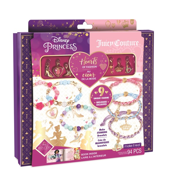 內含九種精緻的公主形象墜飾、粉紅色系知性的貝兒配色、藍白色系純潔的仙杜瑞拉配色,藍紫色系個性的茉莉公主配色,女孩們可自由選配組裝,一盒可組成至少六條手鍊,喜歡迪士尼公主的妳一起來動手做做看!