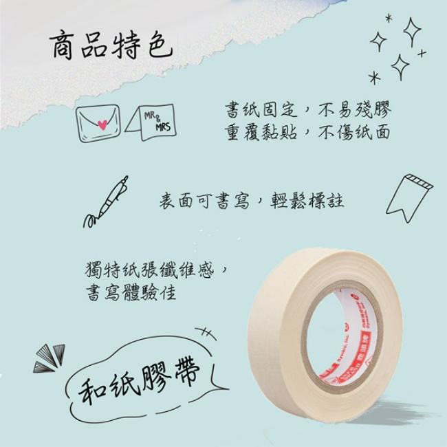 規格:18mmX18M 商品材質:縐紋紙、膠 保存期限:3年 產地:台灣 注意事項: ◎ 請避免陽光直射,並置於陰涼處避免潮溼 ◎ 請勿直接黏貼皮膚 ◎ 請放置於孩童不易拿取的地方 ◎ 製造日期與有效期限,商品成分皆標示於包裝盒上 ◎ 本產品網頁因拍攝關係,圖檔略有差異,實際以廠商出貨為主 ◎ 本產品文案若有變動敬請參照實際商品為準