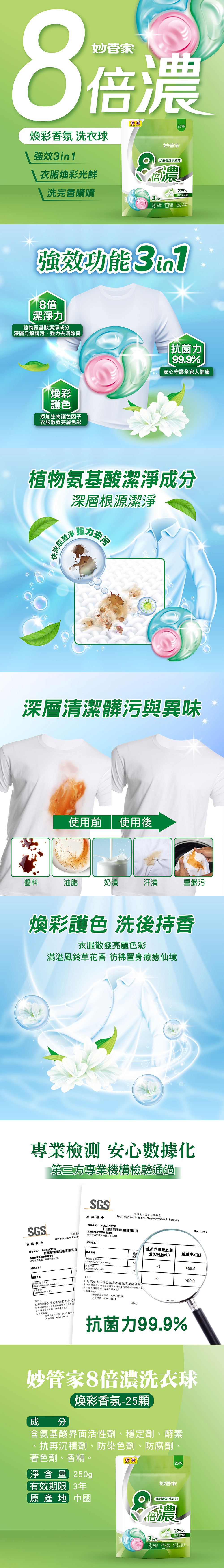 ●濃縮8倍潔淨力,植物氨基酸潔淨成分分解髒污,1顆搞定!
