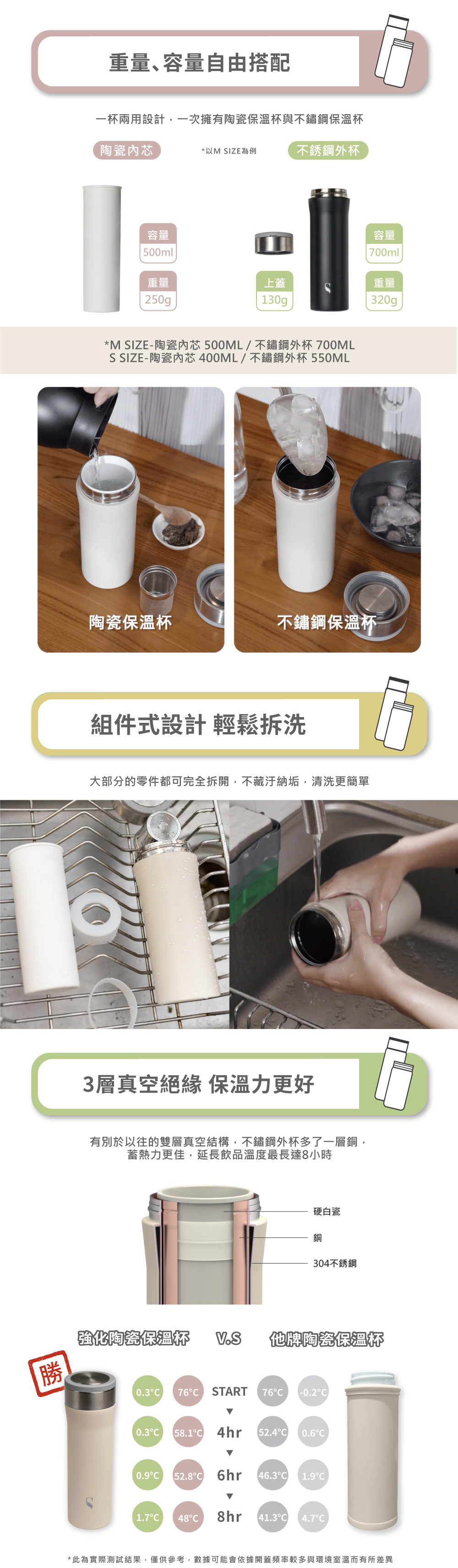 .一杯兩用,同時擁有陶瓷與不鏽鋼保溫杯