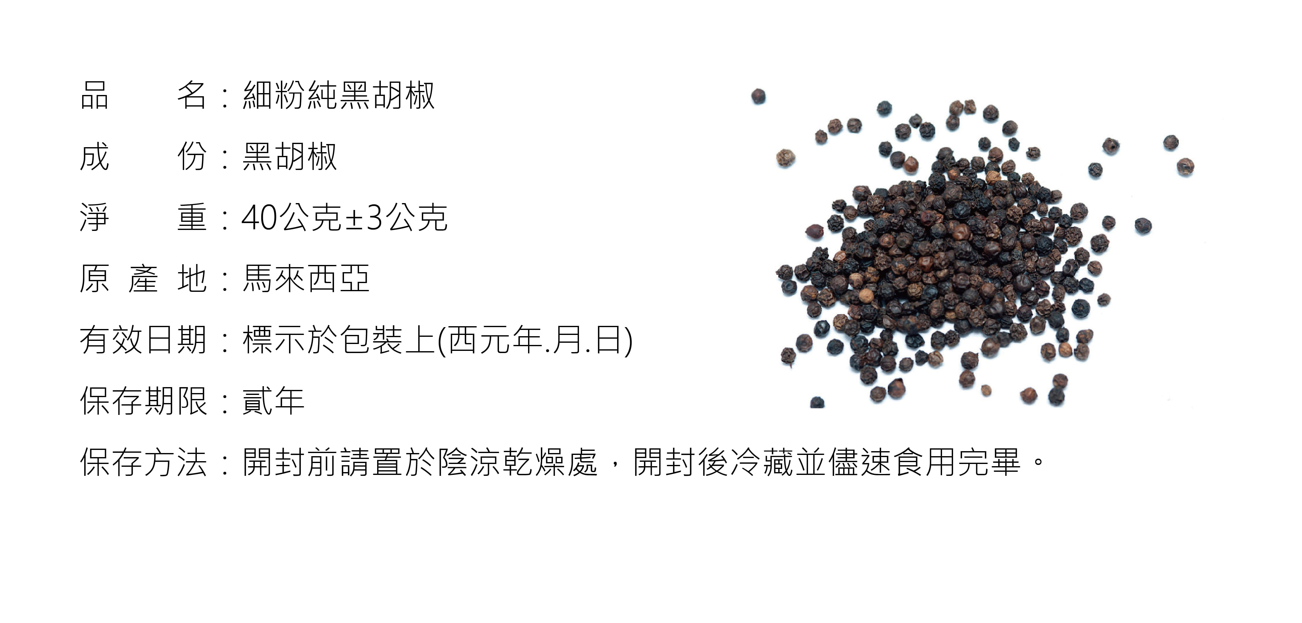 ◆來自馬來西亞精選特級純黑胡椒粒。 ◆不含任何人工澱粉,細粉入菜烹調入味,香氣濃郁