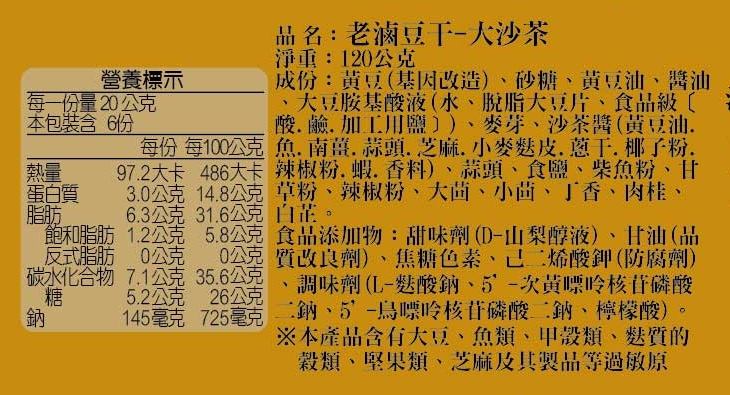 撲鼻而來的沙茶香氣,甜甜鹹鹹的滋味,讓您越嚼越香,無法停止........(因成分含有蒜頭,若有蒜皮在豆干裡面屬正常現象)