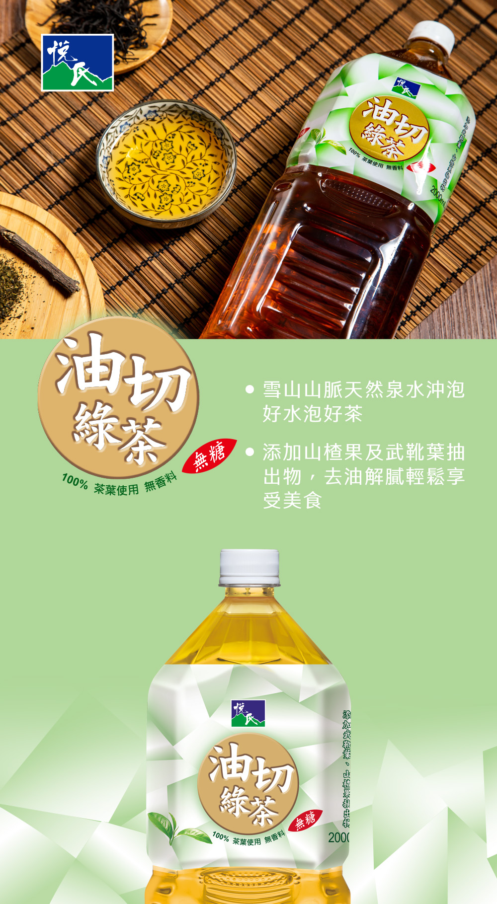 【悅氏】健茶到油切綠茶-無糖2000mlx8瓶