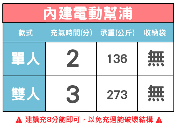 ◆ 保固:新品保固14天,商品若有瑕疵,請於鑑賞期7天內反映,一經充氣使用恕無法辦理退貨。