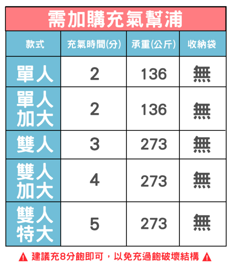 ◆ 保固:新品保固14天,商品若有瑕疵,請於鑑賞期7天內反映,一經充氣使用恕無法辦理退貨。