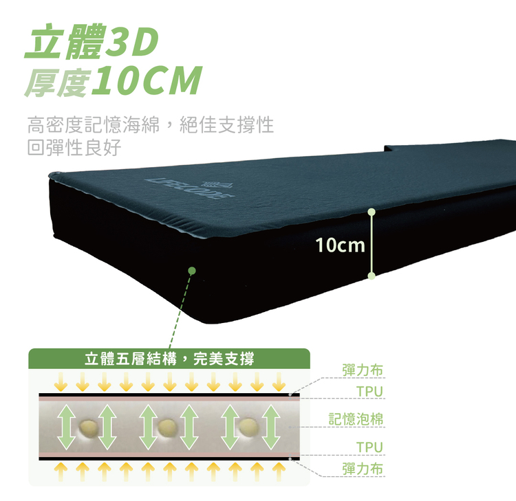 ◆ 立體3D加厚,可自體吸氣至10cm厚,高密度記憶泡棉軟Q好睡