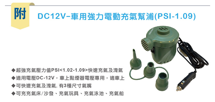 ◆ 超強充氣壓力值PSI<1.02-1.09>快速充氣及洩氣