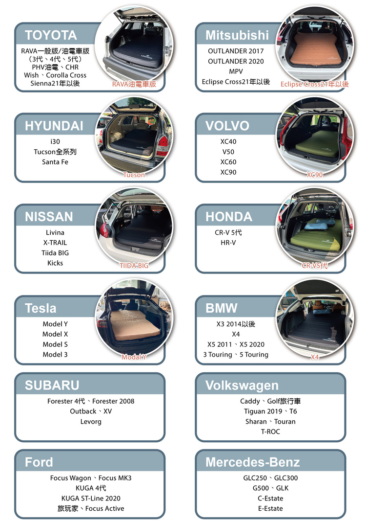 ◆ 長途開車避免過度疲勞的必備神器,在車上也能舒適入睡,多款車型皆適用