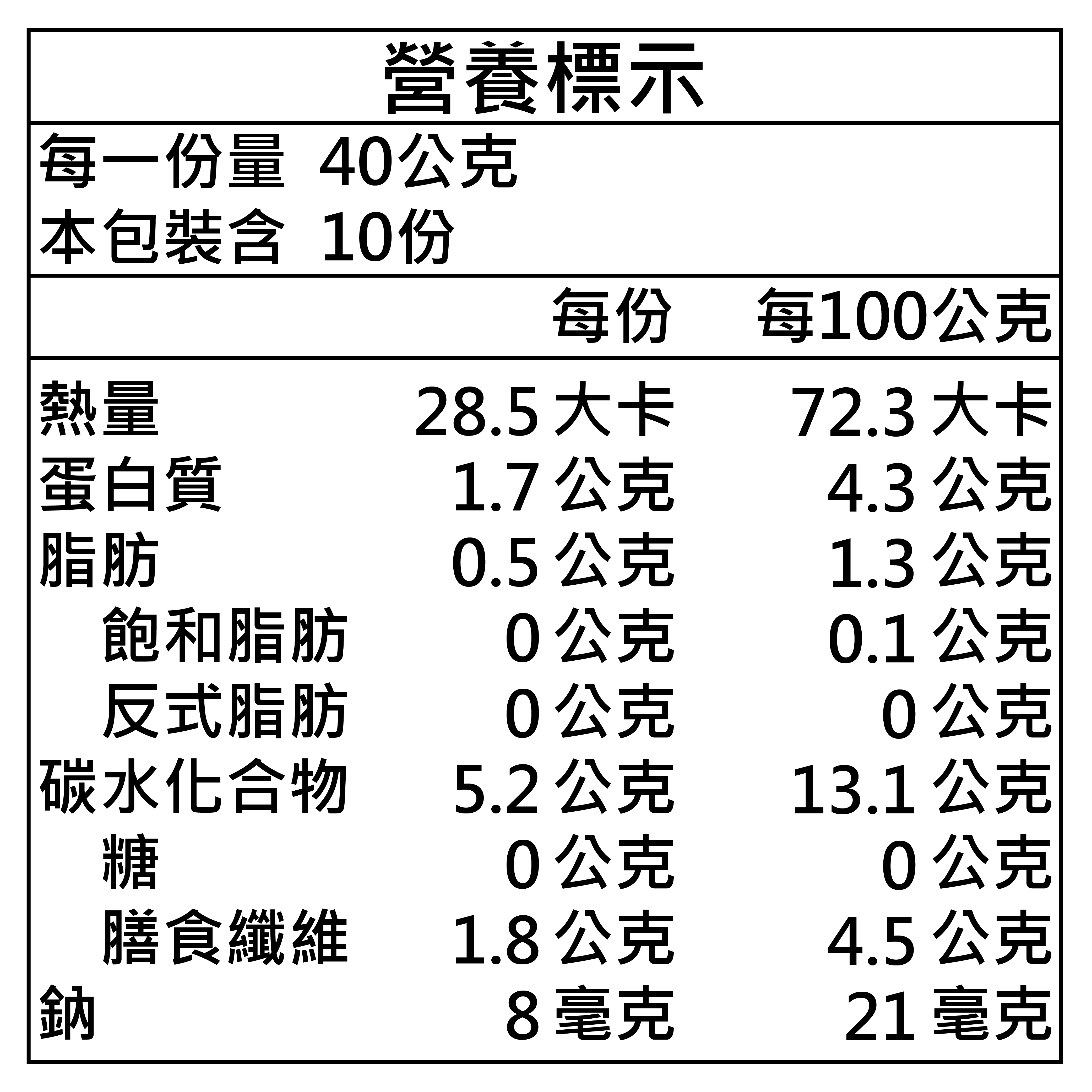 - 營養標示:如圖