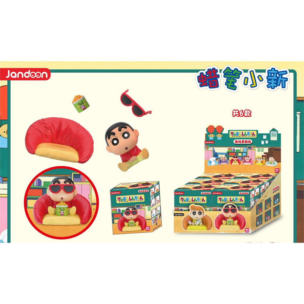 環保安全PVC材質,光滑無毛刺。 正版授權蠟筆小新萌粒場景擺件,共有6款。 每一盒均有配件+一款小公仔,鐘愛蠟筆小新的可入手哦,造型超喜歡。