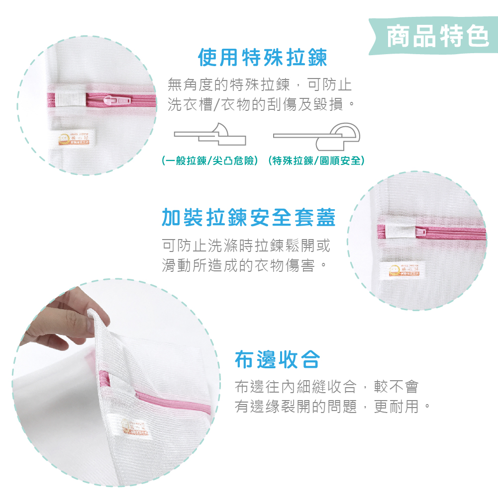 .ABS無金屬拉鍊頭,防止生鏽或氧化避免損傷衣物及洗衣機。