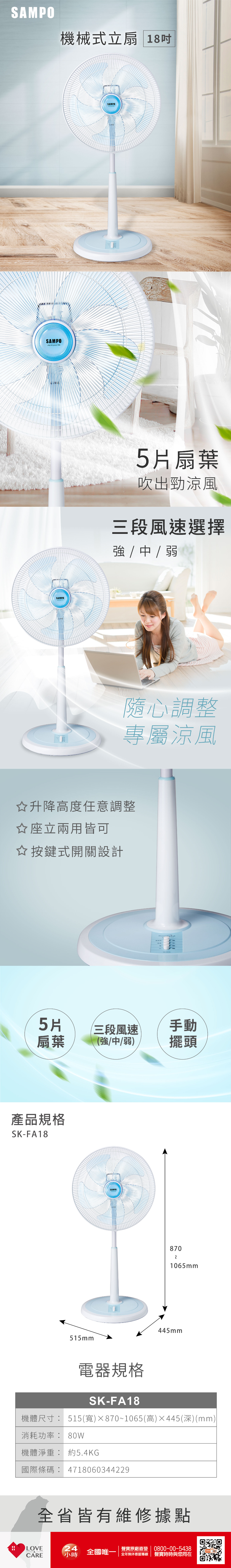 1.商品品名:聲寶18吋機械式立扇 SK-FA18
