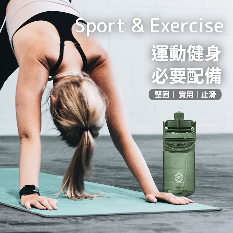 GREEN BELL 綠貝】精選彈跳吸管太空壺(1000ml-軍綠色)